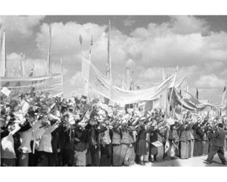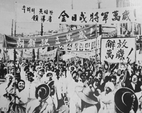 14. Oktober 1945: Massenkundgebung der Stadt Pyongyang zur Begrüßung der triumphalen Rückkehr von Kim Il Sung