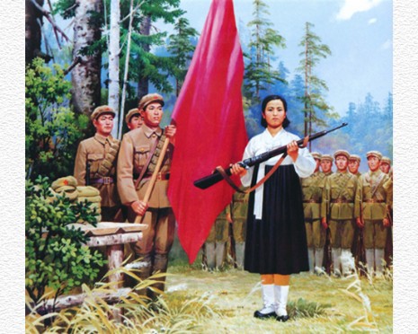 Im antijapanischen Krieg legte Kim Jong Suk beispiellosen Mut, außergewöhnliche Klugheit, treffsichere Schießkunst und herausragende Kühnheit und Selbstlosigkeit an den Tag.