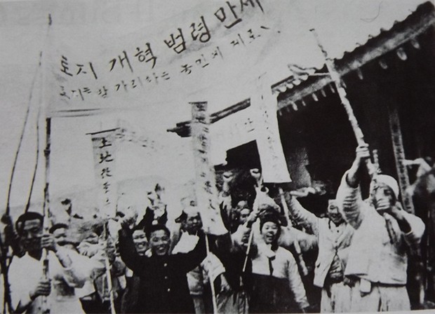 Prof. Dr. Song Tong Won, ein Institutsdirektor der Akademie der Gesellschaftswissenschaften, sagt: "Es war ein jahrhundertealter Wunsch unserer Bauern, Herr des Bodens zu werden. Um diese jahrhundertealte Sehnsucht der Bauern zu erfüllen, erklärte Kim Il Sung Anfang März Juche 35 (1946) die Fragen über die Durchführung der Bodenreform allseitig und verkündete am 5. März das ´Gesetz über die Bodenreform in Nordkorea`. Die Verkündung dieses Gesetzes war ein historisches Ereignis, das die Lage der koreanischen Bauern, die von Jahrhundert zu Jahrhundert als Sklaven des Bodens gelebt hatten, grundlegend änderte."