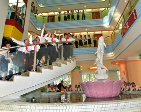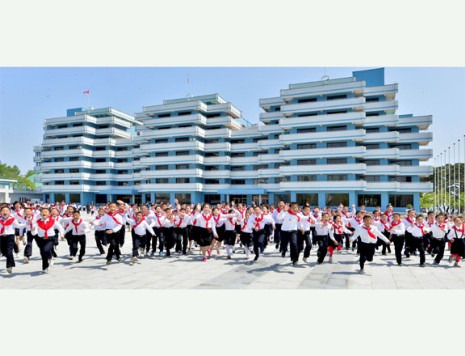 Obwohl das Land unbeschreiblich große Schwierigkeiten zu bestehen hat, sind in den Schulen dank des Systems der unentgeltlichen Schulpflicht die Kinder zu sehen, die ohne Sorge glücklich lernen und singen, und entwickeln die Kinder in den Kinderpalästen und Kinderkulturhäusern nach ihren Wünschen und Neigungen ihr Talent. In den Kinderferienlagern in allen Landesteilen verbringen die Kinder fröhlich ihre Ferien. Es wurde das System der allgemeinen zwölfjährigen Schulpflicht eingeführt und entstanden überall im Lande moderne Rummelplätze, Parks, das Schwimmbad Munsu, der Volkseissportplatz im Freien, die Rollschuhbahn und das Delphinarium Rungna. Diese sind der heißen Liebe des Marschalls Kim Jong Un zur Zukunft und Nachwelt zu verdanken, der die Liebe der Generalissimusse Kim Il Sung und Kim Jong Il genau übernommen hat und die Kinder über alles liebt. Auch am 6. Juni Juche 101(2012), Gründungstag der Koreanischen Kinderorganisation, nahm er am Landestreffen der Grundorganisationen der Koreanischen Kinderorganisation teil und hielt eine Gratulationsansprache, in der er den Mitgliedern der Kinderorganisation eine schöne Zukunft wünschte. Er hob in seiner Rede hervor, die Mitglieder der Kinderorganisation, die zu den Helden der Zukunft tüchtig aufwachsen, seien wertvolle Schätze der Partei und der Republik und alles ihrer Hoffnung und Zukunft. Man wolle ihnen den besten starken aufblühenden sozialistischen Staat in der Welt übergeben. Wie die Mitglieder der Kinderorganisation trug er ein rotes Halstuch, hörte ein Gratulationsgedicht der Gratulationsgruppe der Koreanischen Kinderorganisation und fragte die vorbildlichen Mitglieder der Kinderorganisation nach ihren Hoffnungen. So nahm er sich den ganzen Tag für die Kinder. Auch am 6. Juni Juche 102(2013) nahm Marschall Kim Jong Un am 7. Kongress der Koreanischen Kinderorganisation teil und beglückwünschte die Delegierten der Kinderorganisation.