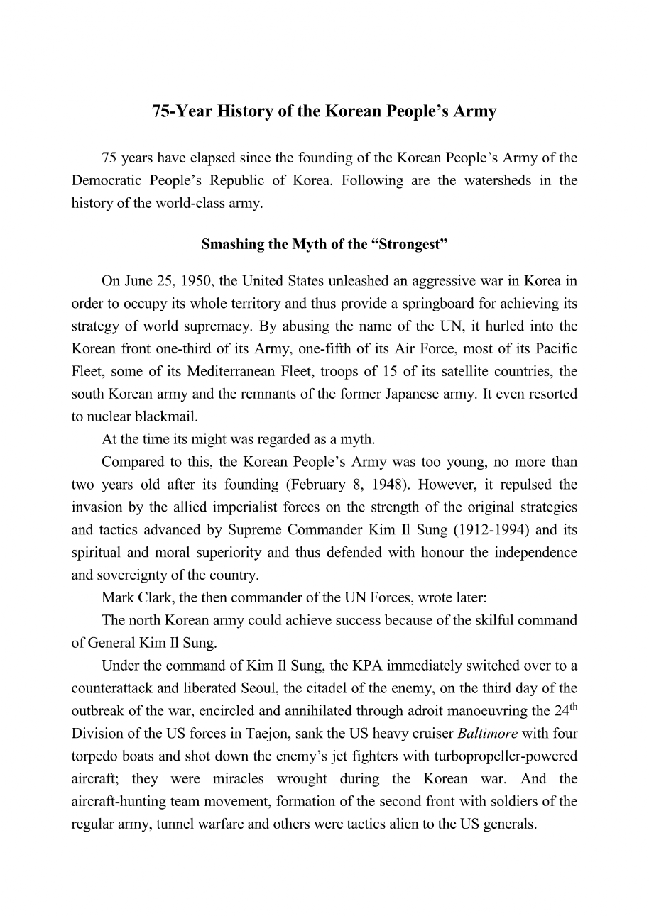 75-Year History of the Korean People’s Army