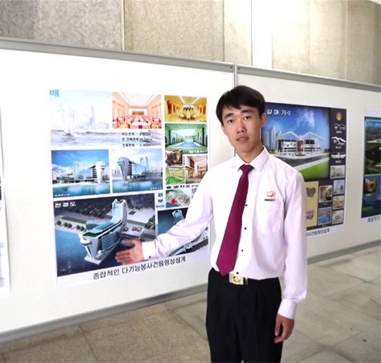 Pak Kum Song, Student der Fakultät Industrielle Formgestaltung der Kunsthochschule Pyongyang, sagt: "Ich will auf der Grundlage der Erfahrungen und Erfolge, die ich bei diesem Festival gesammelt und erzielt habe, einen neuen Start zum nächsten Festival machen. Dadurch will ich als Student das Studium in enge Verbindung mit Praxis bringen und mich zum nützlichen architektonischen Talent des Landes entwickeln."