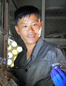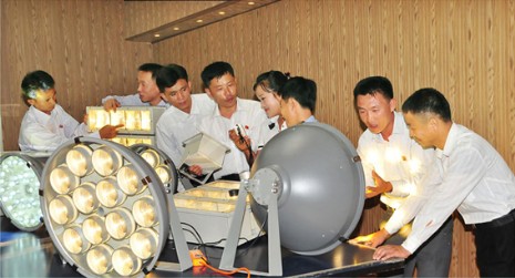 Dr. Sok Yong Bom, Sektionsleiter des Dynamomaschineninstituts bei der Staatlichen Akademie der Wissenschaften, entwickelte Beleuchtungsapparate, die den Lichtnutzungsgrad erhöhen und viel Strom sparen.
