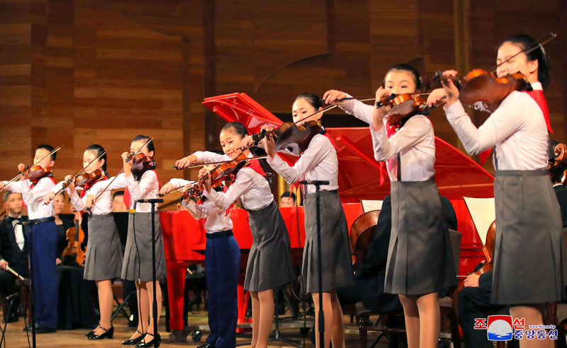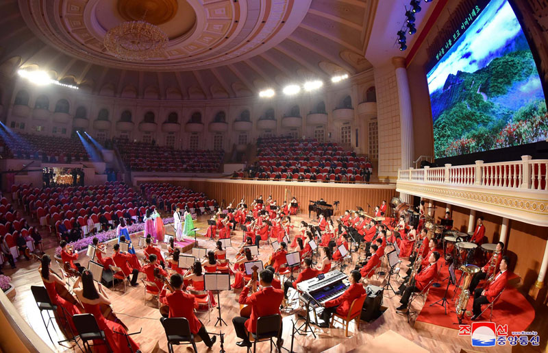 Im Theater Samjiyon am Ufer des Flusses Pothong fand die Aufführung des Samjiyon-Orchesters statt.