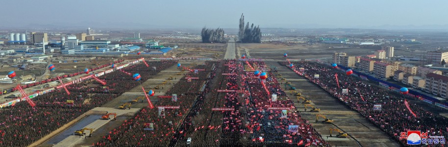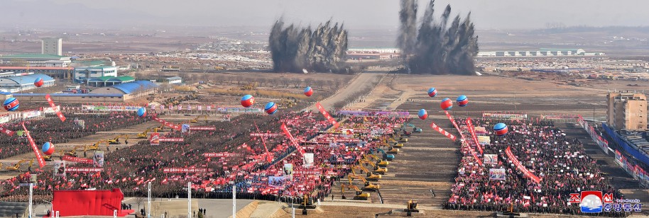 Es war eine Sprengung, die den Begin des 10 000-Familien-Wohnungsbaus in Pyongyang verkündet.