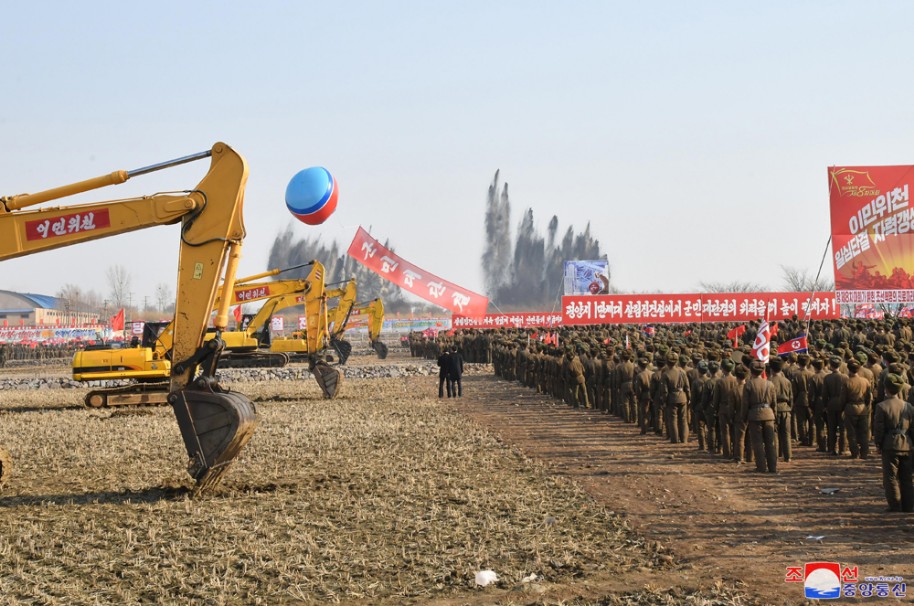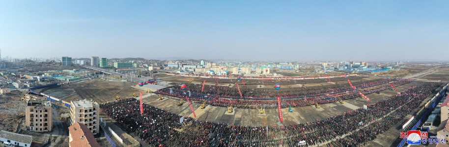 Die Feier zum Beginn des Baus von 10 000 Wohnungen in der Stadt Pyongyang: Kim Jong Un nahm an der Feier teil und hielt eine bedeutungsvolle Rede