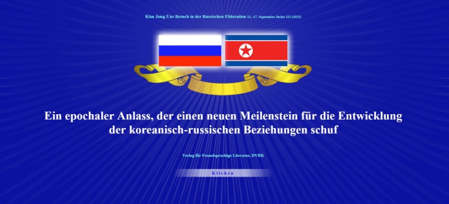 Zum Besuch von Kim Jong Un in der Russischen Föderation veröffentlichen wir die Fotoausstellung "Ein epochaler Anlass, der einen neuen Meilenstein für die Entwicklung der koreanisch-russischen Beziehungen schuf", die Sonderausgabe der Zeitschrift KOREA Pictorial sowie weiteres Foto-, Film- und Studienmaterial.