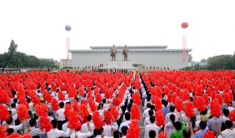 Zum 27. Juli 2014, dem Feiertag des Sieges im Krieg, der mit der Geschichte des starken Landes von Paektusan ewig erstrahlen wird, wurden in der Stadt Sinuiju die Bronzestatuen der Generalissimusse Kim Il Sung und Kim Jong Il ehrerbietig errichtet.