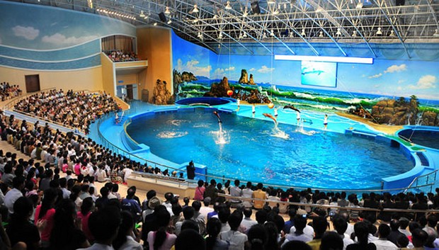 Das Delfinarium Rungna befindet sich auf der Insel Rungna des Flusses Taedong, der durch das Zentrum von Pyongyang fließt.