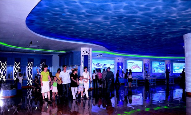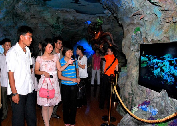 Es gibt viele Räume für die Übermittlung der wissenschaftlich-technischen Kenntnisse, darunter der meereshöhlenförmige Raum, wo man sich die allgemeinen Kenntnisse über die Meeresbiologie erwerben kann.