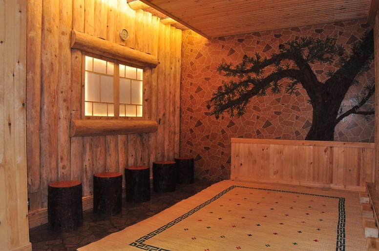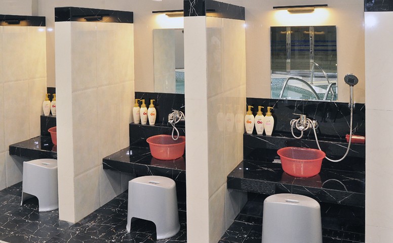 Im Erdgeschoss gibt es Friseur-, Schönheitssalon, Massageräume, Baderäume für Herren und Damen und Planschbecken, im ersten Stock sind Speisesaal und mehrere Speiseräume ausgezeichnet ausgestaltet und im zweiten Stock werden verschiedenartige Getränke wie Bier Kaffee und Tee angeboten.