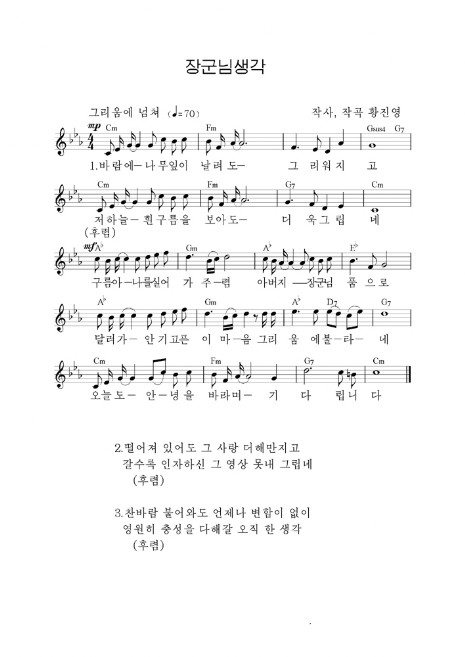 Das Lied "Unser Gedanke an den Heerführer" wurde im Jahr Juche 82 (1993) vom Künstler des Volkes, Hwang Jin Yong, geschrieben und komponiert.