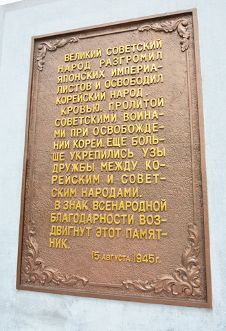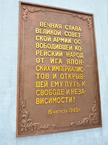 Dieses Monument wurde errichtet, um die Großtaten der sowjetischen Offiziere und Soldaten, die in 1945 mit der KRVA im Kampf der Befreiung Koreas gegen Japan erwarben, für immer zu übermitteln.