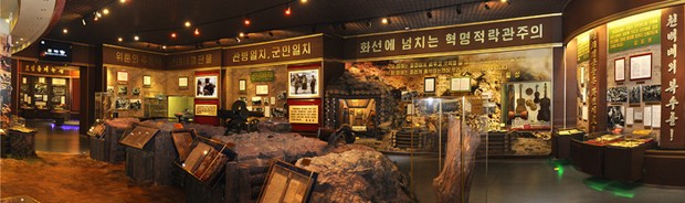 In allen Ausstellungs- und Repräsentationsräumen wie Räume über den Sieg und die Provokation und die große Dioramahalle über den Verteidigungskampf auf der Insel Wolmi werden die erhabene Geisteswelt der Vaterlandsverteidiger der 1950er Jahre, die Operationen und Kampfverdienste der Volksarmisten sowie die Materialien über Gräueltaten und Niederlage des US-Imperialismus und der südkoreanischen Marionetten als Provokateur des Krieges lebensnah gezeigt. Dort sind auch die damaligen Tatsachenmaterialien, die originellen kampftechnischen Utensilien und Sandkastenmodelle, Dioramen, Wachsstandbilder und Fotomaterialien, die den Kampf und das Leben der Volksarmisten an der Front zeigen, wirklichkeitsgetreu zur Schau gestellt, damit man die damaligen harten Umstände wahrnehmen kann, so wie es war. Es gibt auch Räume über die chinesischen Volksfreiwilligen und internationale Unterstützung, welche die aufrichtige Unterstützung der chinesischen Partei und des chinesischen Staates und die Verdienste der chinesischen Volksfreiwilligen, die mit Blut den gemeinsamen Feind zurückgeschlagen haben, und die materielle wie auch moralische Unterstützung der Völker der Welt zeigen. Ferner sind auch in diesem Museum Räume über den bewaffneten antijapanischen Kampf und den Aufbau der regulären Streitkräfte, in denen hauptsächlich die wichtigen Operationen und Gefechte gezeigt werden, die die im Paektu-Gebirge gebahnte Geschichte und Tradition über den steten Sieg eindeutig veranschaulichen.