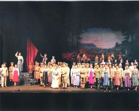 Danach schuf das Opernensemble die Revolutionsoper "Das Blumenmädchen", ein unvergängliches klassisches Meisterwerk, und führte diese im In- und Ausland auf. Viele Zuschauer sagten lobend, dass die Darstellungskunst der Schauspieler, die Hintergrundmusik und die Bühnendekoration ausgezeichnet und einmalig seien. Das Opernensemble schuf mehrere Opern, die starke Eindrücke auf die Zuschauer machten. Es wurden sowohl die koreanischen als auch die ausländischen Opern hervorragend geschaffen. Die bedeutendsten sind die chinesischen Opern "Traum der roten Kammer" und "Liang Shan Bo und Zhu Ying Tai". Aufgrund der hervorragenden Talente und Darstellungskunst der Schauspieler lösten diese Opern bei Koreanern und Ausländern stürmischen Beifall aus. Neben den Opern schuf das Ensemble Dutzende Lieder wie "Der neue Frühling" und "Die Nacht der Hauptstadt" und Tanzstücke wie "Worfeltanz", "Dreifarbentanz" und "Schwerttanz", die hochgeschätzt wurden. Während der Schaffung der Opern in der Vergangenheit gingen aus dem Opernensemble viele berühmte Solosänger, -tänzer und -spieler hervor.