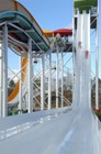 Schon bei Wasserrutschbahn gibt es die schwindelerregend hohe, die einfache, die die Kinder benutzen können, die steile und die sanfte, die lange und die kurze und auch die Bahnen, auf der einen man mit Gummiboot und auf der anderen ohne es herabrutscht. Die Sturzwasserutschbahn im Freien ist fast 20m hoch, und hier kann man die maximale Geschwindigkeit von 20m pro Sekunde erreichen. Hier finden sich auch einige dutzend Planschbecken, darunter das 430m lange Kanalbecken, das Wellenbad, das Ultraschallbad und das Becken mit Wasserfall.
