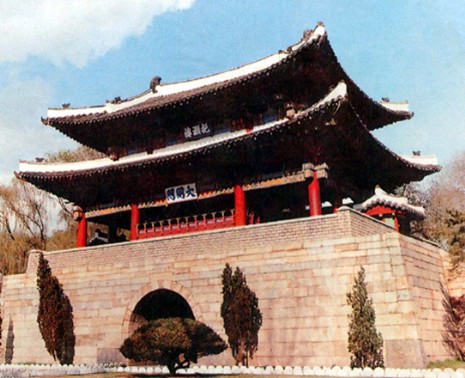 Das Tor Taedong ist das östliche Tor der Festung, die für den Schutz Pyongyangs vor fremder Aggression gebaut wurde. Da hängen die Schilder mit den Schriften "Ubhoru" und "Tor Taedong".