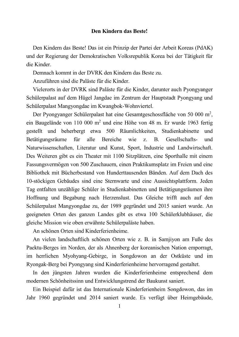 Den Kindern das Beste - Nordkorea-Information