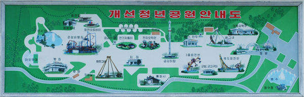 Führer Kim Jong Il benannte diesen Park, und der Aushängeschild am Eingang des Vergnügungsplatzes wurde von ihm direkt geschrieben.