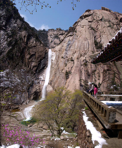 Der Kuryong-Wasserfall ist ein großartiger Wasserfall, der 74 m hoch ist. Unter dem Wasserfall gibt es einen großen Teich namens Kuryong.