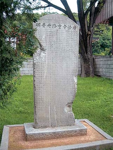 Am Denkmal Kwangbop ist die Legende über 9 Drachen und 99 Teichen auf dem Berg Kuryong in Taesong geschrieben.