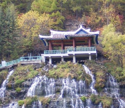 Über dem Wasserfall am Berg wurde ein Pavillon zum Überblicken der schönen Landschaft in der Umgebung errichtet. Der Wasserwall Rimyongsu, der auf seine eigenartigen jahreszeitlichen Schönheiten stolz ist, hat immer viele Besucher.