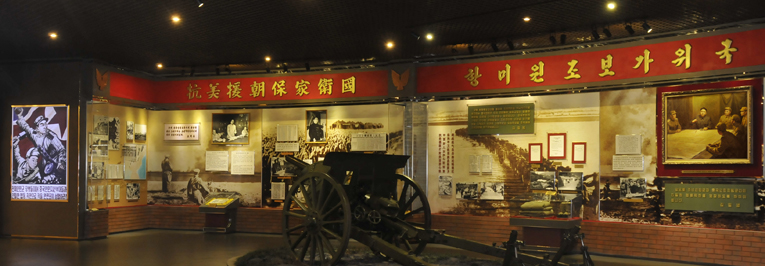 Dort sind die Materialien und die historischen Gegenstände, die den Kampf der Soldaten der chinesischen Volksfreiwilligentruppen überliefern, die während des koreanischen Befreiungskrieges (Juni 1950-Juli 1953) im Kampf gegen imperialistische Aggressoren die Heldentaten vollbrachten, zur Schau gestellt.