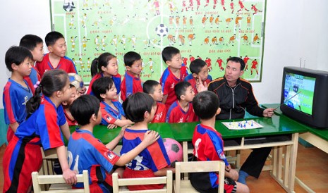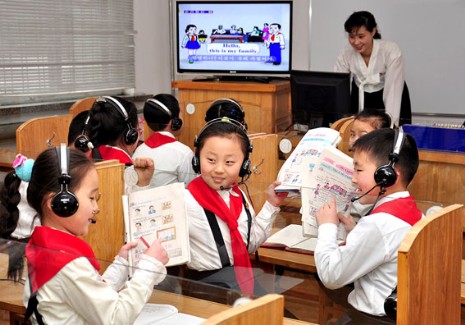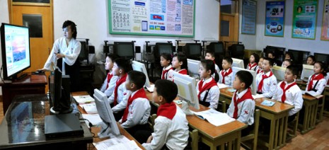 In der Grundschule Ponghak, Stadtbezirk Pyongchon in Pyongyang, ist darum aktiv bemüht, die Informationstechnik einzuführen.