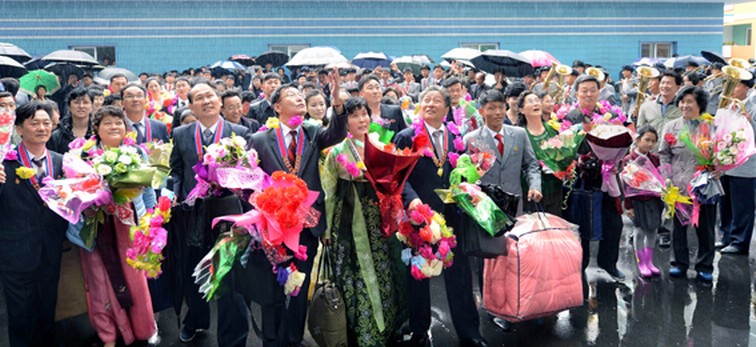 Außerdem beteiligten sich daran die Gratulationsdelegation der Japankoreaner zum Tag der Sonne, die anderen Gratulationsgruppe der Auslandskoreaner und die Delegationen, die Auslandskoreaner, Vertreter der Pyongyanger Zweigstelle der Antiimperialistischen Nationalen Demokratischen Front Südkoreas, die diplomatischen Vertreter vieler Länder, die Vertreter der internationalen Organisationen, der Angehörigen des Militärattachekorps und ihre Ehefrauen, andere ausländische Gäste, die für die Teilnahme an Festveranstaltungen zum Tag der Sonne in der DVR Korea weilten.