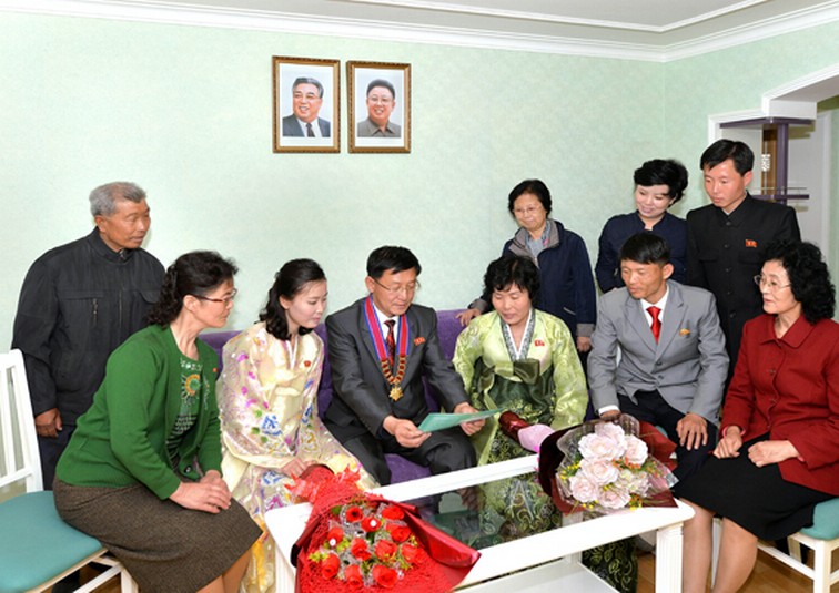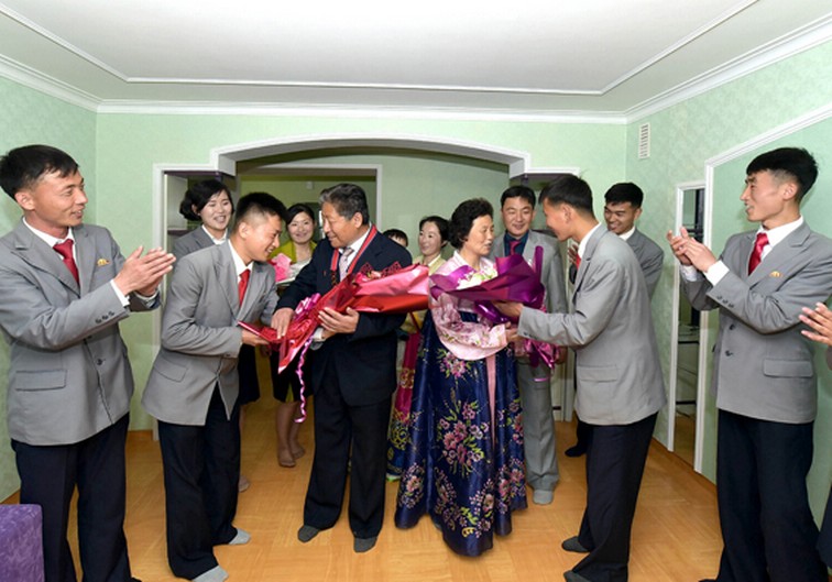 Die Einziehenden verdankten dem verehrten Obersten Führer Kim Jong Un, der er getragen vom erhabenen Willen von Kim Il Sung und Kim Jong Il, wer immer sich um ihre besten Lebensbedingungen kümmerten, die goldenen Sitzkissen von der Liebe und die Neste vom Glück wiederholt an sie verschenkt.
