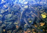Im Kratersee Chon des Berges Paektusan gibt es auch die Fische wie Karausche, Bachforelle, Pseudorasbora parva und Pfolle. Die Fauna im Kratersee vom Berg Paektusan und im dichten Wald der unendlich breiten Erde ist mannigfaltig, und die Besucher geniessen die Schönheit der Natur.