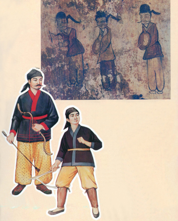 Die Grabfresken zeigen, dass es in der Koguryo-Zeit zwei Arten Herrenoberkleidungen gab.
