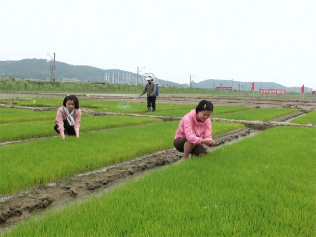 Außerdem führen alle Werktätigen der Landwirtschaft ihre Arbeiten verantwortungsvoll durch und übererfüllen ihre hohen Tagespläne für die Umpflanzung von Reissetzlingen.