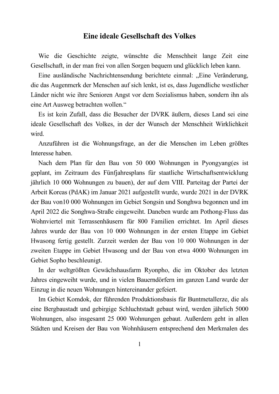 Eine ideale Gesellschaft des Volkes - Nordkorea-Information