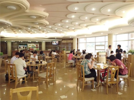 In der Bier-Halle herrscht ein großer Betrieb.Hier werden die 7 Sorten Taedonggang-Bier serviert. Das einmalige und erfrischende Taedonggang-Bier erfreut sich bei den Gästen großer Popularität. Die runden Tische sind bequem für die Benutzer.