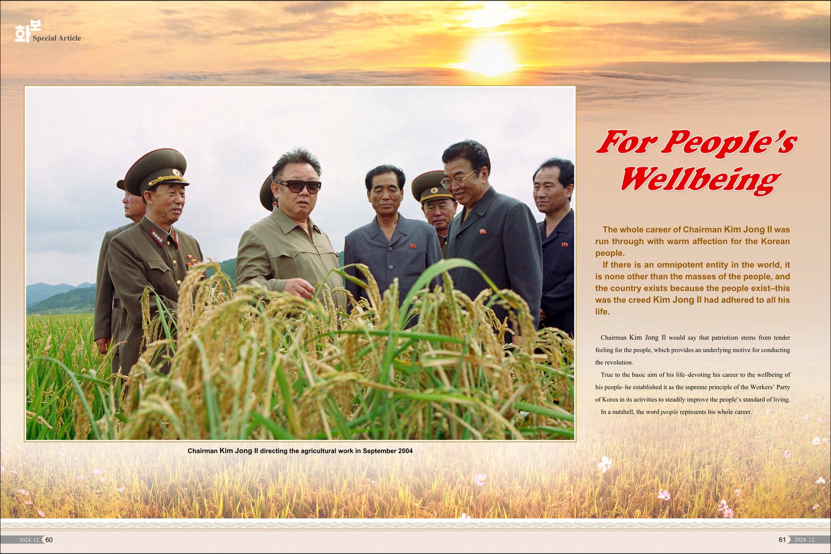 Aus dem Anlass des 13. Todestages des Genossen Kim Jong Il am 17. Dezember 2024 (Juche 113) veröffentlichen wir die Fotoserie über das revolutionäre Wirken von Genossen Kim Jong Il, die mit englischsprachigem Erläuterungstext versehene Fotoserie "For People´s Wellbeing" aus der aktuellen Ausgabe der KOREA Pictorial sowie weiteres Studienmaterial.