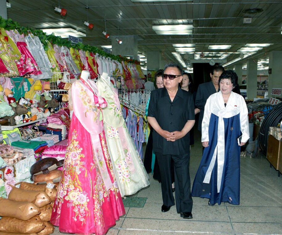 Kim Jong Il bei der Besichtigung der 2. Warenausstellung im Pyongyanger Warenhaus Nr. 1, Juli 2011