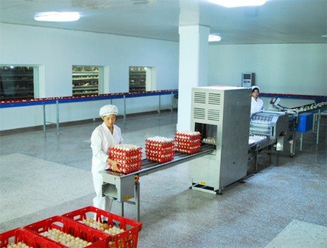 In der Stadt Pyongyang, DVRK, gibt es den Hühnerzuchtbetrieb Mangyongdae, der am 17. Oktober Juche 55 (1966) gegründet wurde. Durch ständige Rekonstruktion für die Erhöhung der Produktivität schuf der Betrieb eine solide Basis dafür, die Hauptstädter mit mehr Eiern zu versorgen. Die Technische Direktorin des Betriebes Om Jong Sil spricht: "Unser Betrieb setzt sich heute für die Mehrproduktion von Eiern ein. Auf der Grundlage der konkreten Analyse der Verhältnisse der Abteilungen erarbeiten wir realistische Tages- und Wochenpläne für Eierproduktion und bemühen uns um die rapide Lösung der Probleme. Im Einklang mit den Sommerbedingungen ergreifen wir konsequente Maßnahmen zur Lüftung der Gebäude und zur Versorgung der Hühner mit Futter nach Alter, damit die Eier ununterbrochen produziert werden. Außerdem nehmen alle Arbeiterinnen am Kurs für technische Ausbildung teil. So kennen sie sich in den technischen Fragen über die Zucht und Pflege der Hühner aus und sorgen für die Normalisierung der Eierproduktion auf einem hohen Niveau."