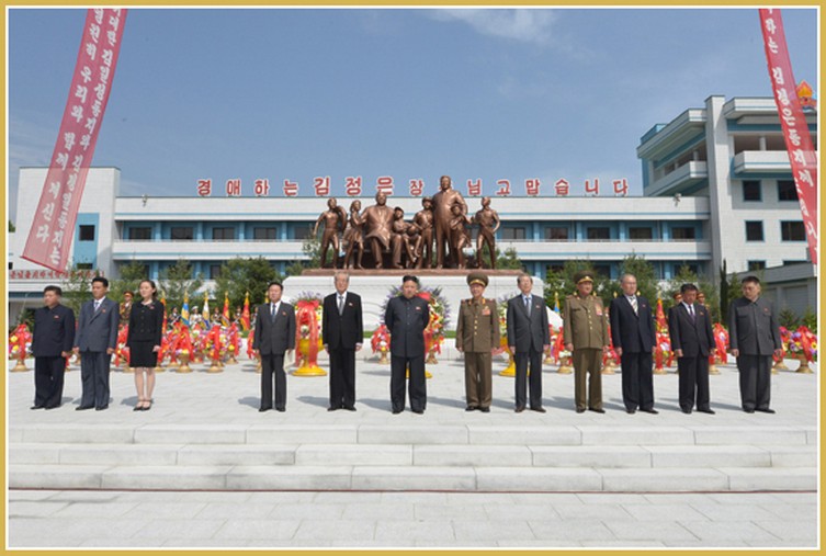 Auf der Tribüne standen verantwortliche Funktionäre der Partei und Armee, Vorsitzender des Zentralvorstandes des Sozialistischen Jugendverbandes „Kim Il Sung“ und die Funktionäre der Einheiten wie der Truppen der Volksarmee, des Kunststudios Mansudae und der Verwaltung für Bau der Historischen Revolutionären Stätten, die für die Errichtung der Bronzestatuen beigetragen hatten.