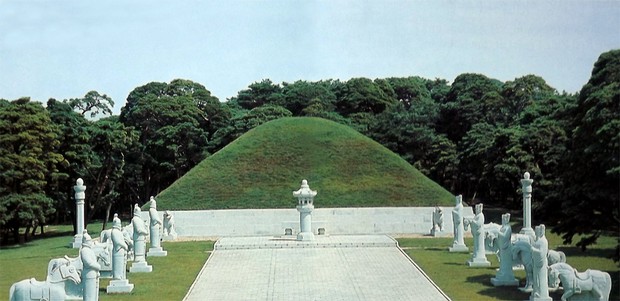 Der üppige Kiefernwald in der Gemeinde Ryongsan, der sich in der Umgebung von der Grabstätte des Königs Tongmyong befindet, wird gut geschützt und gepflegt.