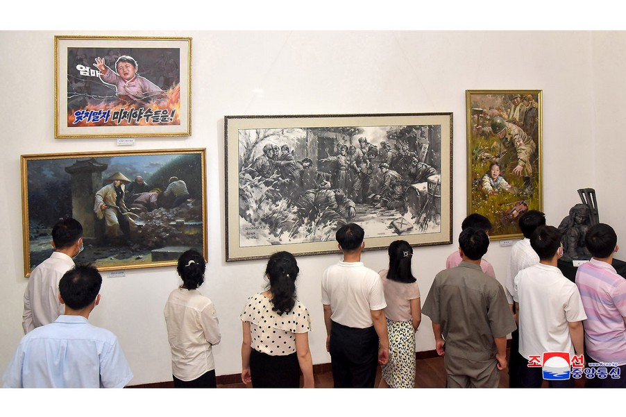 Zum Tag des Kampfes gegen den US-Imperialismus „25. Juni“ wurde am 23. Juni im Internationalen Kulturhaus Pyongyang die Kunstausstellung über die klassenmäßige Erziehung eröffnet.