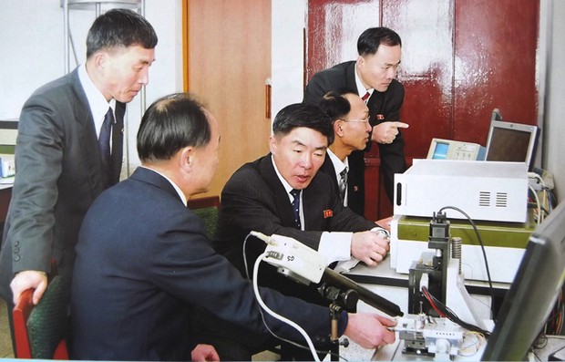 Die Lehrer und Forscher der Kim-Il-Sung-Universität haben im Vorjahr diese High-Tech-Anlage gebaut. Sie setzten sich ein mutiges Ziel, mit ihrer Kraft und Technik das Atomkraft-Mikroskop zu entwickeln, und gab sich mit allen Kräften dieser Forschungsarbeit hin. Sie analysierten Hunderte bestehende Abhandlungen und die Typen der von den anderen Ländern entwickelten Nano-Messanlagen und fertigten die Zeichnung für Gesamtmontage, die Konstruktionen der Zubehörteile und die Konstruktion der Steuerungsschaltkreise an. Sie bearbeiteten dann in mehreren metallbearbeitenden Werken durch die Zusammenarbeit mit den Technikern der Werke die präzisen Maschinenzubehörteile. Es kam sehr oft vor, dass die mühsam bearbeiteten Zubehörteile als Ausschuss festgelegt wurden, und dass man wegen der niedrigen Härte des Werkstoffes die Zubehörteile neu bearbeiten musste. Sie gaben aber nicht auf, beseitigten die Ungünstigkeiten bei Vorrichtungen und Schaltkreisen und konnten im April Juche 101 (2012) das erste Bild der Graphitoberfläche sehen, das durch das Atomkraft-Mikroskop gewonnen wurde. Es waren aber noch umfangreiche technische Probleme zu lösen, wenn man ein Atomkraft-Mikroskop für praktische Anwendung entwickeln wollte. Die Forschungsgruppe löste sie in 6 Monaten und baute endlich das Atomkraft-Mikroskop.