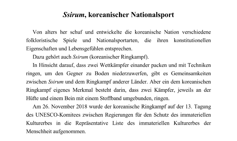 Nationalsport Ssirum - Nordkorea-Information