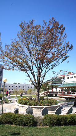 Auf den beiden Seiten der breiten Strasse erstrecken sich die grünen Rasenfelder unendlich. Insbesondere die Mittellinie der Strasse entlang wurden die Blumenständer und die Rasenfelder neu angelegt. Dadurch wurde die Grenze zwischen den beiden Seiten der Fahrbahn noch deutlicher, nahm die Grünfläche zu und wurde die Landschaft noch herrlicher. In diesem Stadtbezirk wurden die Plätze zwischen den Wohnhäusern und öffentlichen Gebäuden effektiv ausgenutzt. Hier wurden Bäume angepflanzt und Rasenfelder angelegt. Der Stadtbezirk treibt die Arbeit, im Monat der Herbstgeneralmobilmachung für Landespflege an den Strassen und in den Gemeinden Bäume und Rasen anzupflanzen, beharrlich voran.