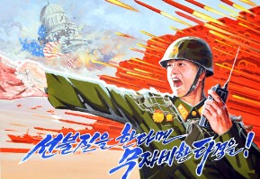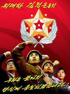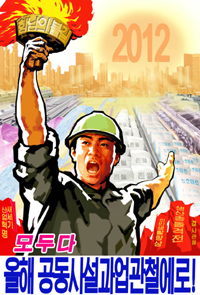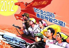 “Forward for general offensive in response to Party’s call!” - The Workers’ Party of Korea Publishing House produced a poster “Forward for general offensive in response to Party’s call!”The poster depicts the serviceman and people all out in the general offensive against the background of Songun Chollima flying high in response to the flames of Hamnam.The poster which reflects the militant call of the party with appealing stroke ardently calls upon all the servicepersons and people to bring about great renovations and leap forward in all fields for the building of a thriving nation to honor the pledge made before the bier of leader Kim Jong Il. (2/2012)