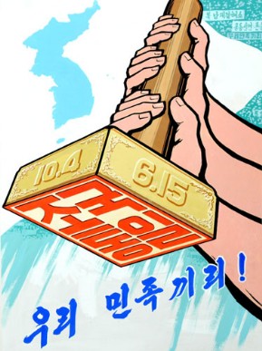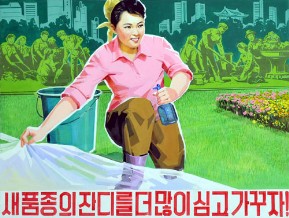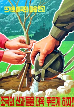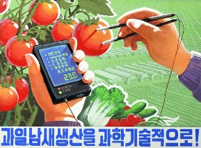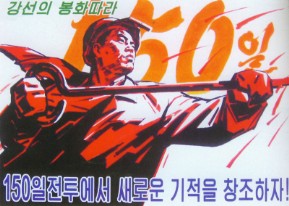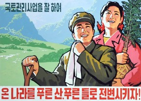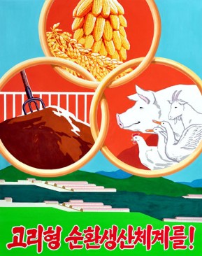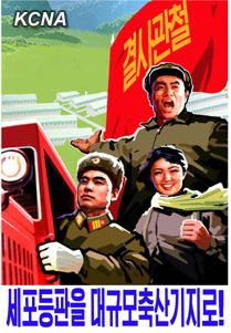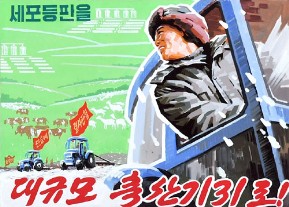 The poster “Toward Sepho tableland, a large-scale stockbreeding base!” deals with the revolutionary stamina of all the army and people determined to build another socialist land of bliss in Kangwon Province by successfully carrying out the party’s grand nature-remaking plan. (1/2013)
