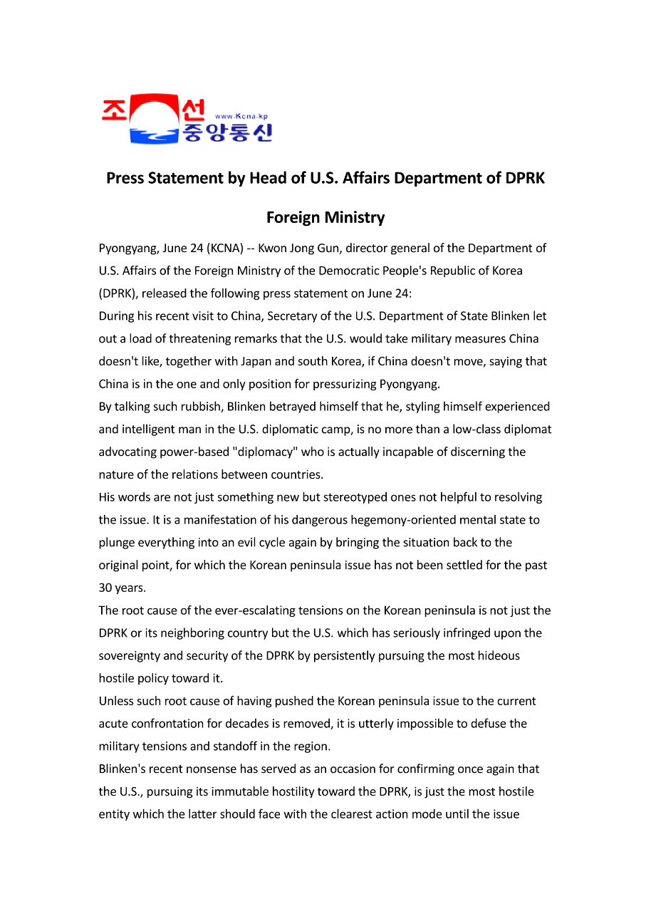 Press Statement by Head of U.S. Affairs Department of DPRK Foreign Ministry - Nordkorea-Information
