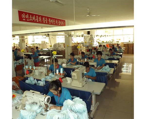 Die Abteilungsleiterin An Hyon Sun sagt: "Jede Ware unseres Werkes mögen die Frauen sehr. Die sanften und feinen Farben und die Formen entsprechen den Hobbys und Geschmäcken unserer Frauen. Daher wächst ständig der Bedarf an unseren Waren."