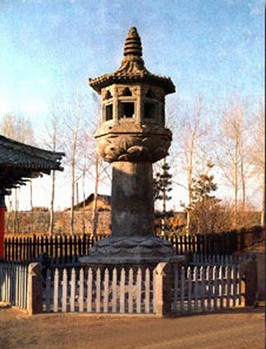 Die Steinlaterne in Sanggyong stammt aus der Zeit des Feudalstaates Palhae und steht auf der Stelle des zweiten buddhistischen Tempels im Verwaltungsgebiet Ryongchon in Sanggyong, Hauptstadt Palhaes.