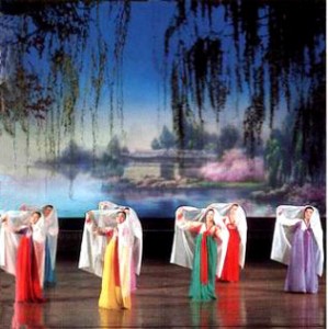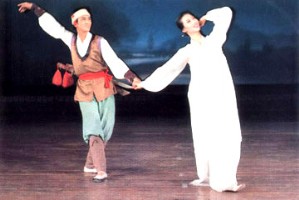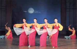 Traditional folk dance pieces like janggo dance, masque dance, wooden-shoes dance, sleeve dance, flower-jar dance and drum dance are depicted in compliance with the aesthetic sense and emotion of the times, each showing charms of Korean dances.